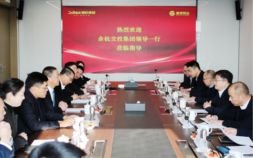 2月16日,杭州余杭交投集团党委书记、董事长谈震鸿携领导班子及相关部室、子公司主要负责人莅临德信集团考察交流。德信控股集团董事长胡一平、德信服务集团执行董事兼总裁唐俊杰及集团各业务板块负责人陪同考察座谈活动。