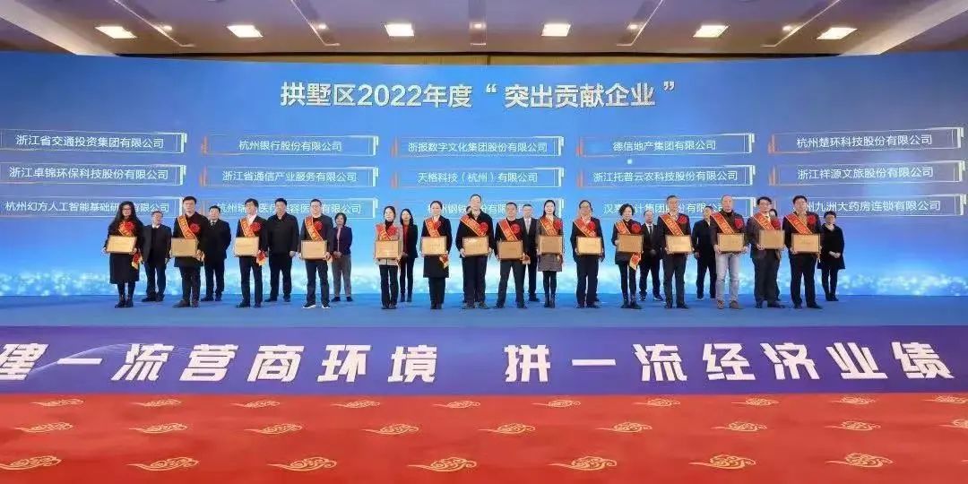 大会公布了拱墅区2022年度“双百”企业(突出贡献企业115家,产业赛道领跑企业100家)、2022年度股份经济合作社税收贡献十强单位、经济高质量发展成绩突出集体和先进个人名单等,并为2023年拱墅区招商大使颁发聘书。德信地产集团不负众望荣获拱墅区年度“突出贡献企业”称号。